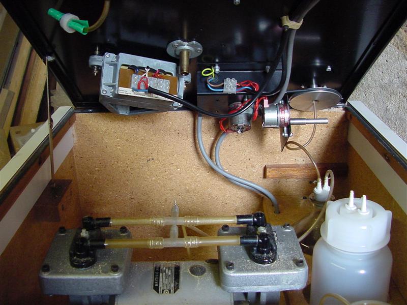 Die Vacuum-Pumpen im inneren sind nicht von KNF, wie später verbaut, sondern "BRITISH MADE". Einen konkreten Hersteller kann ich nicht erkennen...: