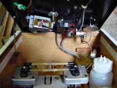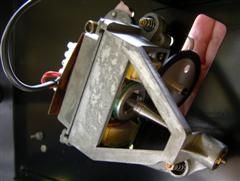 Hier zu sehen links der Motor, der den Faden abwickelt (die Fadenrolle fehlt