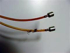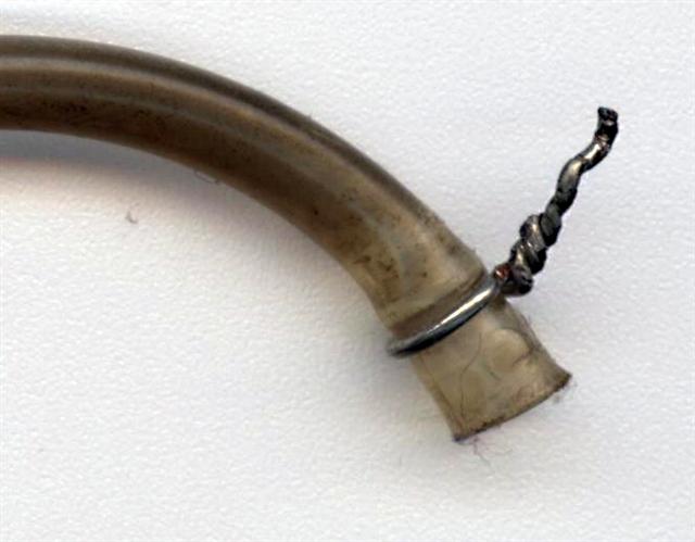 Die PTFE-Düse ist in den Kopf eingepresst, in den Kern ist ein Metallröhrchen straff eingeschoben...