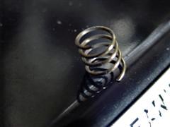 Unter einem Plattentellerrand klemmte ein Stück Spiralfeder, deren Herkunft ich nicht enträtseln kann: