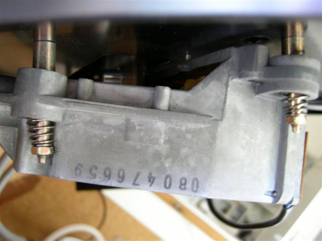 Im Gegensatz zu späteren Maschinen kann ich keine seitliche Klemmschraube für die PTFE-Düse finden.