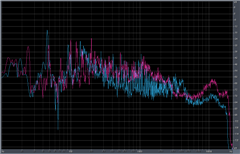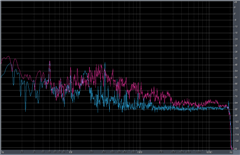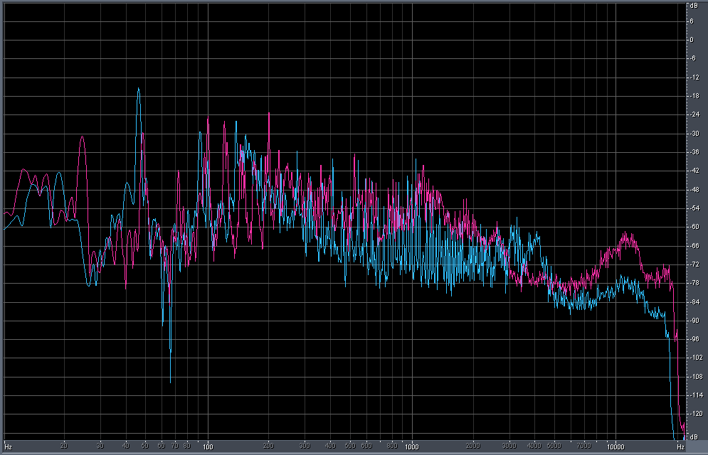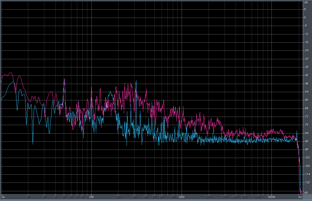Das Geräusch-Spektrum wärend der Absaugung - ROT die KMAL RCM, BLAU die GrooVe-Laundry.