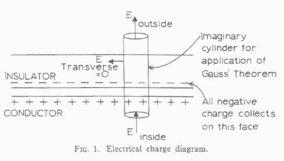 ductor and one outside both the conductor and insulator. By a famous law of electricity—Gauss' Law—the flux of the electric field through the surface of this cylinder is equal to the charge enclosed—which is zero. (This is the law: V'E = p/€0 = 0.)
