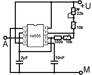 Dieser Multivibrator muss ein regelbares Puls/Pausen-Verhältnis haben (und sollte Sinnvollerweise mit der vorhandenen 9V-Betriebsspannung zurechtkommen). Das macht den Tonarmvorschub quasi zum "Schrittmotor" - mit der Länge der Schritte und der Pausen kann man recht gut die "Vorschubgeschwindigkeit" während das Absaugens regeln. (Die Frequenz sollte irgendwo zwischen 5 und 50 Hz liegen, so dass die Mechanik den Schritten folgen kann aber nicht so sehr ruckelt)