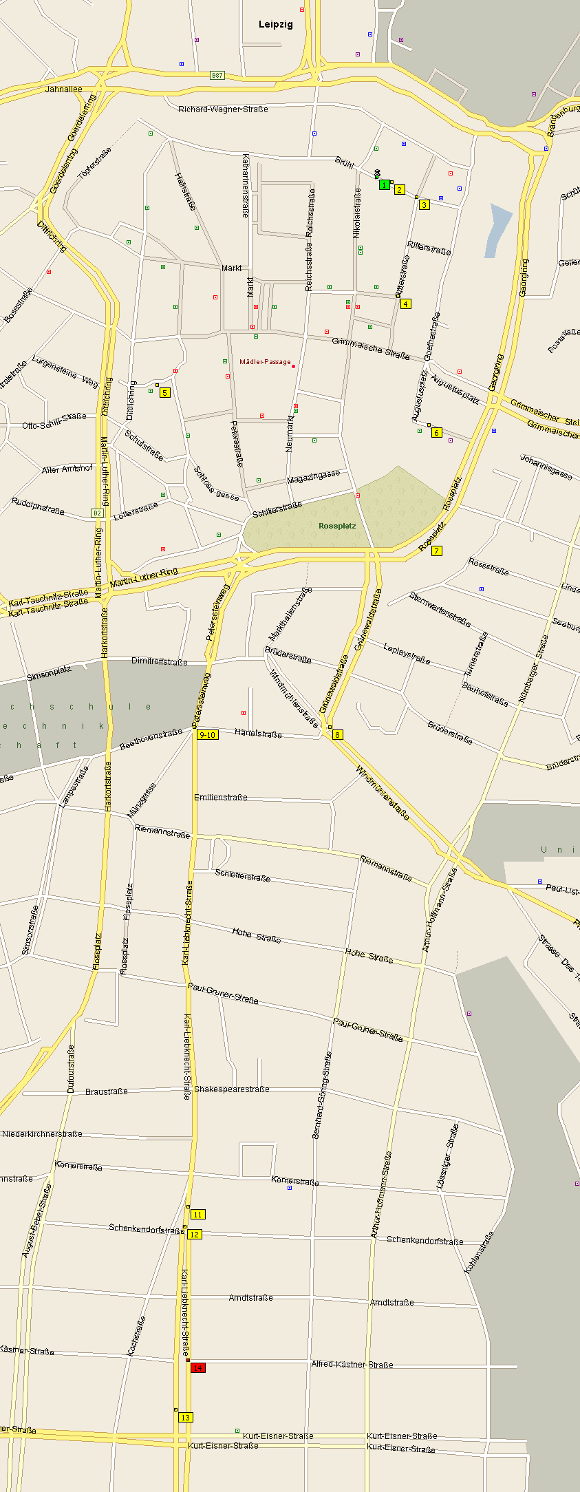 von der Ritterstr. 3 Minuten zu Fuss zum Augustusplatz, oder vom Thomaskirchhof 5 Minuten: