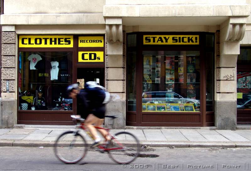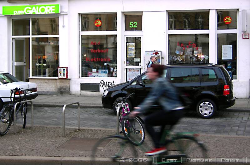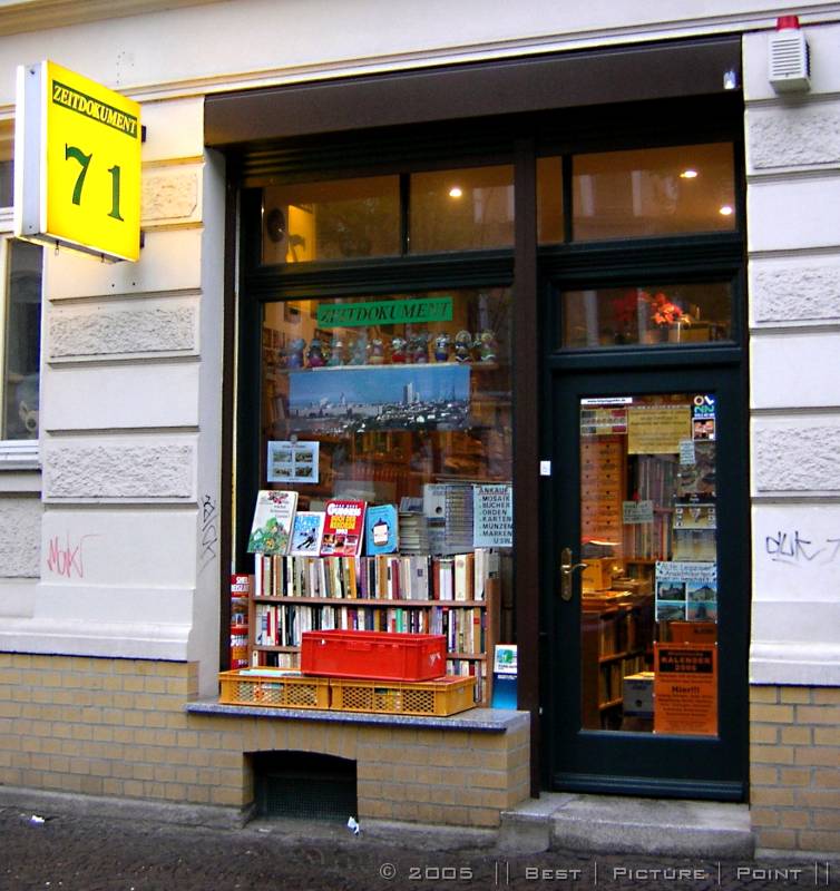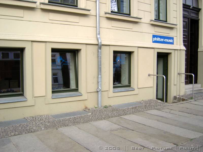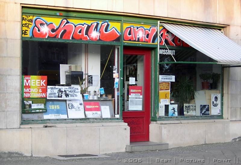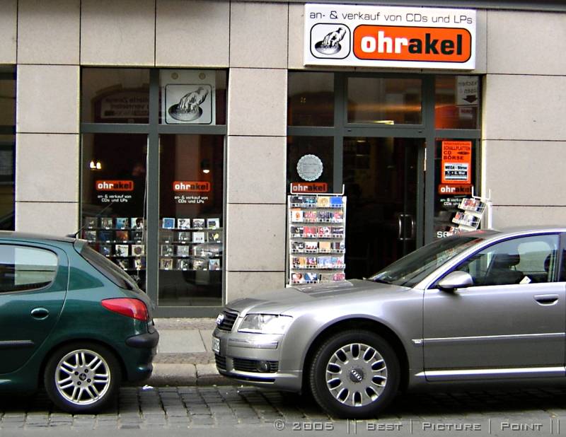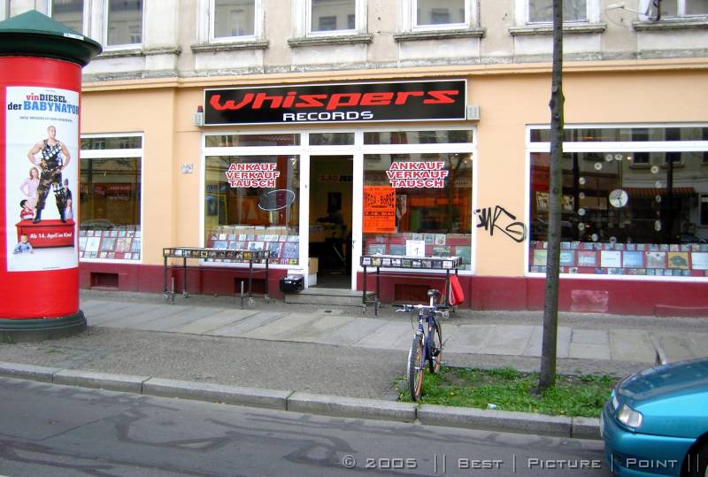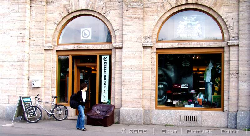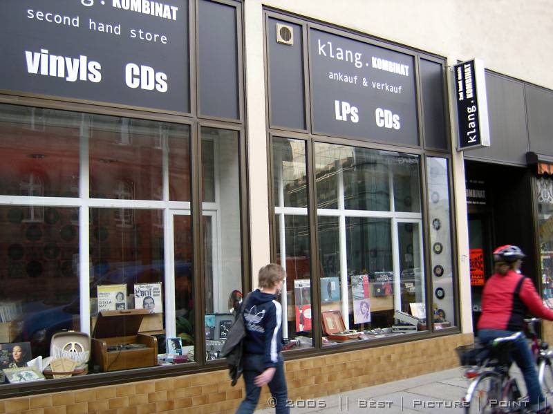 auf der gegenüber liegenden Strassenseite: TIMBRE - ein HiFi/HighEnd-Laden, der auch "Software" anbietet und: Plattenwasch-Service.