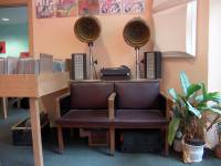 Reinhören: ja - ein Plattenspieler + Kopfhörer, ein Plattenspieler an der Kasse